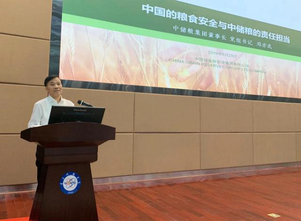 报告会上,邓亦武围绕贯彻落实习近平总书记关于粮食安全、国企改革等重要论述精神,从大国“粮史”、大国“粮情”、大国“粮仓”和大国“粮心”四方面,深入介绍了中国粮食治理的历史沿革、新中国成立以来粮食安全事业发展,中储粮在国家粮食安全保障体系中发挥的重要作用,以及面向新时代中储粮努力守住管好大国粮仓的初心和使命。