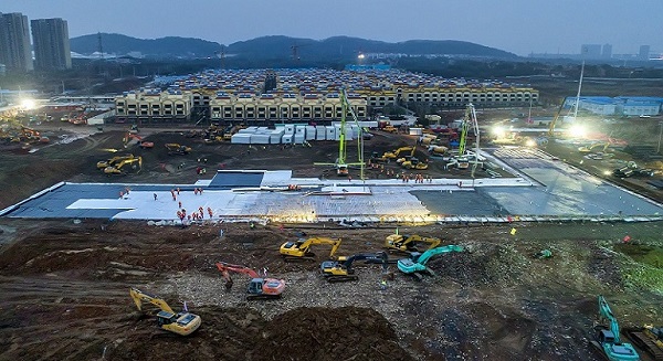 1月25日,由中国建筑中建三局牵头实施的武汉火神山医院正式开工,医院总建筑面积3.39万平方米。截至1月28日12时,第一栋箱式板房开始搭设,地下管网铺设同步全面展开,现场进度正在快速推进,火神山医院效果图正式发布。