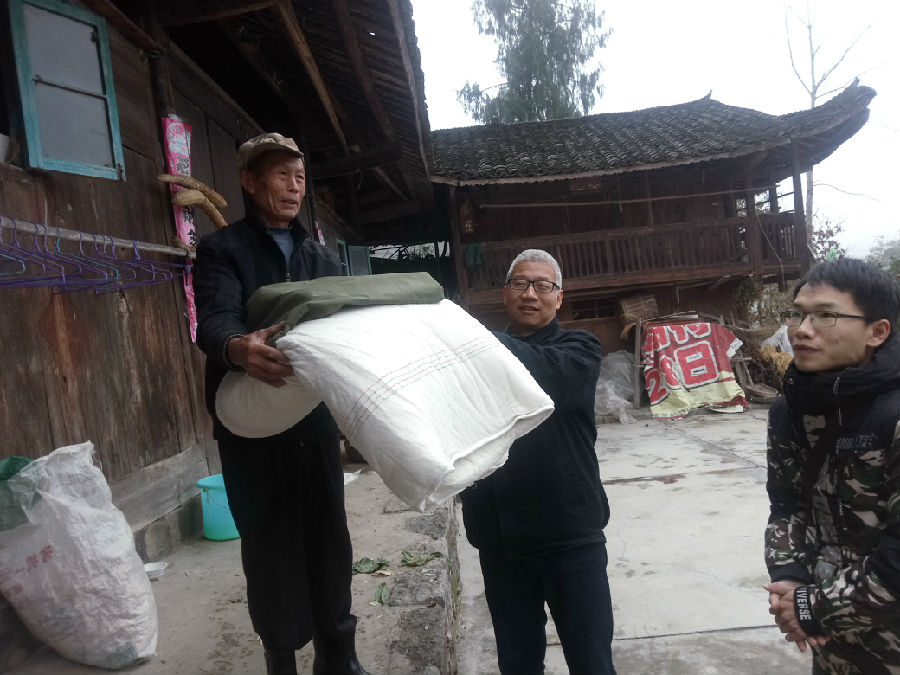 朱利庆为搬迁新家的建档立卡贫困户送上新被子和祝福。
