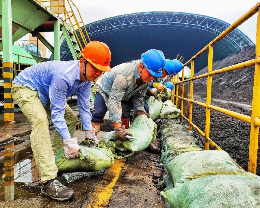 针对暴雨“侵袭”,江西丰城发电公司青年突击队开启“24小时工作”模式,加强对户外变压器、断路器等各类户外设备的防雷、防潮检查和应急处理,维护防汛设备处于良好备用状态, 用编织袋就地取材对挡煤墙进行垒高,筑起抗洪保电的坚固防线。