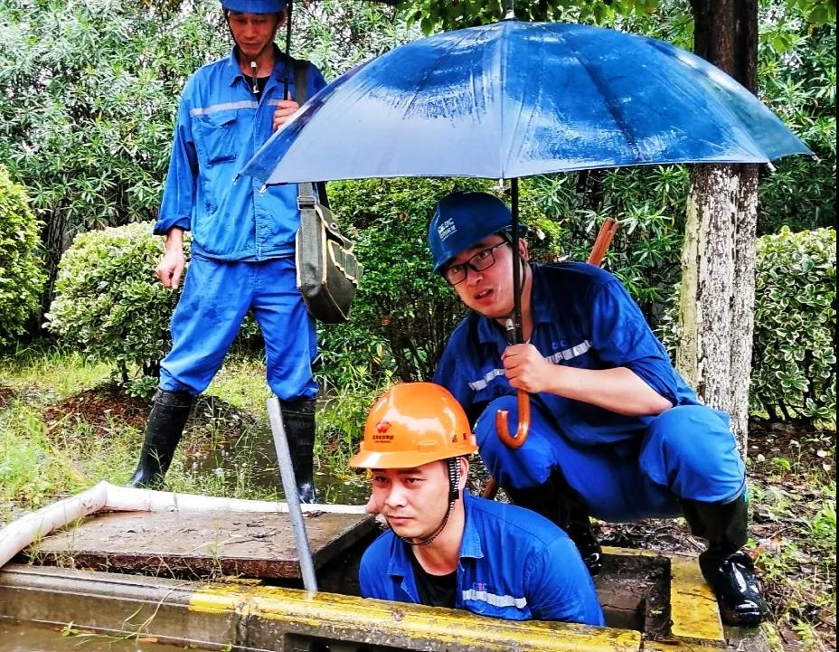 安徽公司铜陵发电公司员工冒雨清理疏通堵塞雨水井