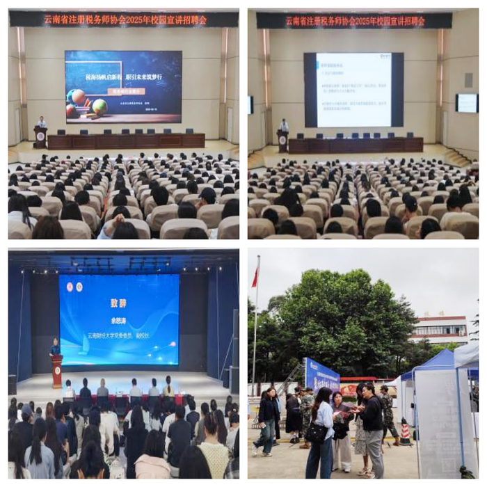 近期,云南省注册税务师协会为进一步宣传税务师行业及2025年度税务师职业资格考试,围绕“税海扬帆启新程、职引未来筑梦行”主题开展走进校园宣讲招聘活动。云南省注册税务师行业党委副书记、云南省注册税务师协会副会长兼秘书长徐翔、副会长相恒来,带领协会秘书处全体同志和云南13家税务师事务所40余人,分别于5月8日、5月9日与5月15日走进了云南财经大学、云南民族大学、云南财经职业学院三所高校,与近千名学生齐聚校园,共同探讨税务行业职业发展新未来。