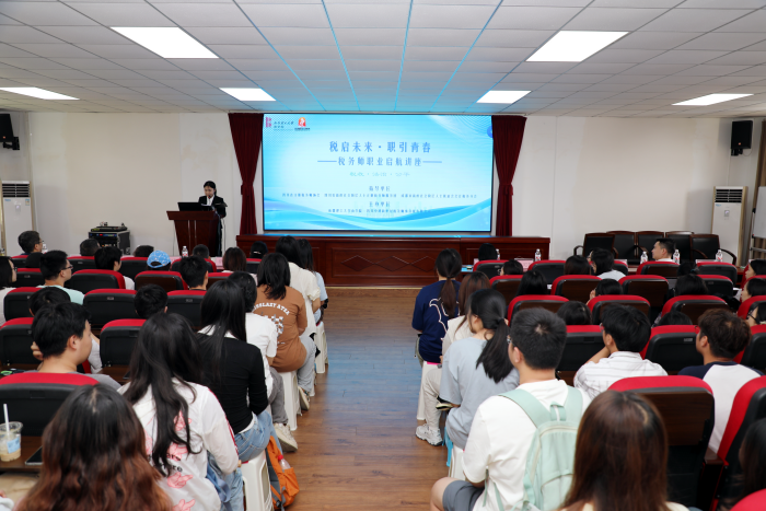 花海燕在致辞中介绍了商学院的历史沿革与师资优势,并表示此次讲座将理论教学与实务经验深度融合,通过职业成长案例激发同学专业学习热情。商学院将持续通过实习基地建设、校企课程共建等多元化模式,进一步深化与中鸿新世纪等涉税专业服务机构的合作交流。