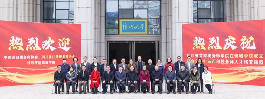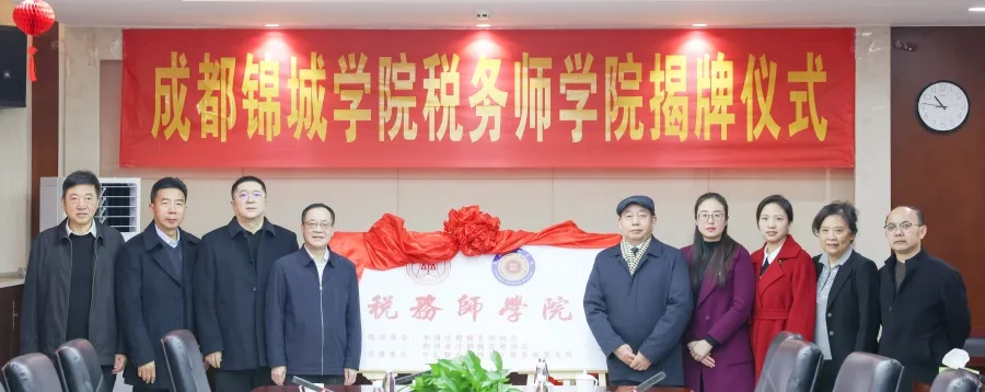 1月16日,成都锦城学院举行了税务师学院揭牌仪式。中国注册税务师行业党委副书记、中税协副会长兼秘书长郑江平,国家税务总局四川省税务局党委委员、副局长、省注行业党委书记刘合斌,国家税务总局四川省税务局纳税服务处副处长刘定杰,省注册税务师行业党委副书记、省税协会长董光晖,省注册税务师行业党委委员、省税协副会长谭胜宇,省税协副会长、中汇智谷(四川)税务师事务所董事长杨波,成都锦城学院党委副书记王丽丽,党委常委、副校长白俊峰,财务总监韩香群,财务会计学院兼税务师学院院长章成蓉等参加了揭牌仪式。