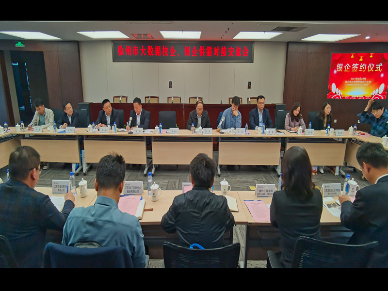 会上,徐州市大数据管理中心简要介绍《徐州市“十四五”大数据产业规划》;企业家代表分别就企业发展优势和人才、资金需求情况作出交流发言;高校重点介绍了大数据方向的人才培养计划及科研成效;江苏银行徐州分行具体介绍了科技金融相关信贷产品及配套金融服务。为促进校企、银企精准对接,徐州市大数据管理中心组织部分校企、银企以自愿为前提,签署了战略合作协议。
