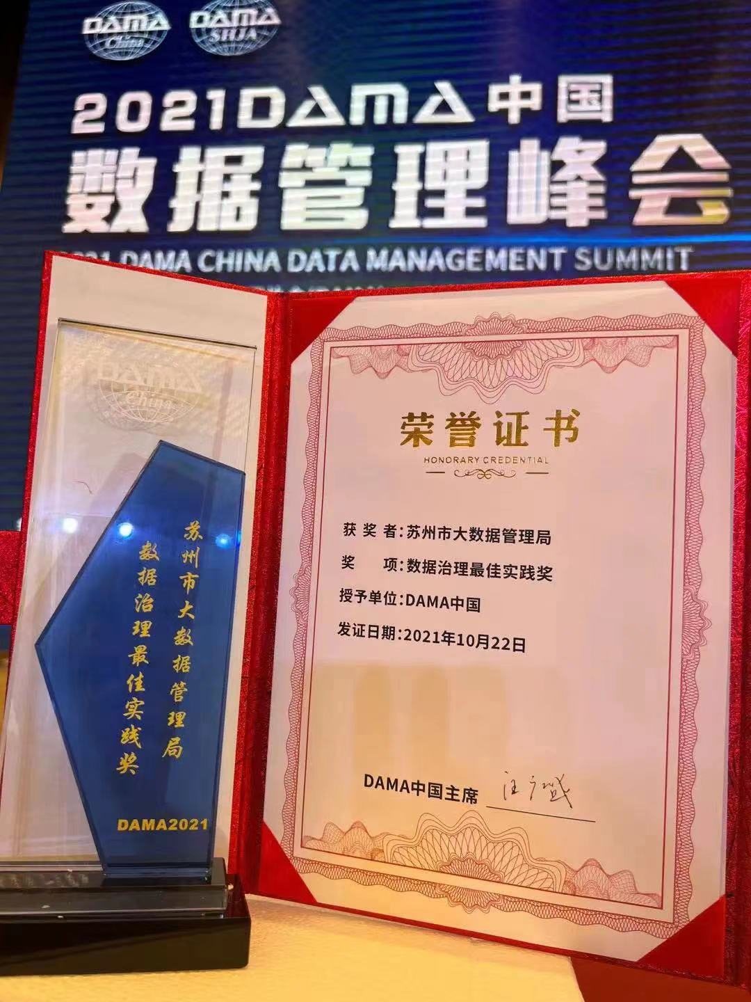 苏州荣获 2021中国数据管理峰会“数据治理最佳实践奖”