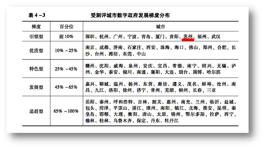 发布日期:2021-11-25 09:42 来源:苏州大数据发布 字体:[ 大 中 小 ] 近日,清华大学数据治理研究中心发布《中国数字政府发展研究报告(2021)》,苏州位列数字政府发展第一梯队,是全国十个引领型城市中的唯一地级市。