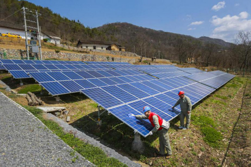 湖北长阳县供电公司员工维护当地的村级光伏扶贫电站
