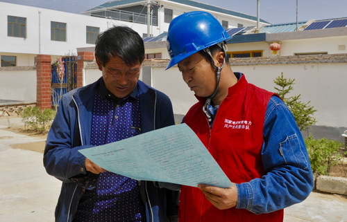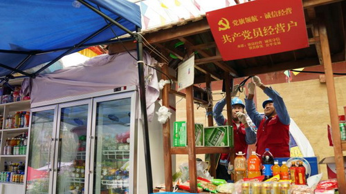 国网青海电力共产党员服务队上门帮助德吉村个体经营户检查用电设备