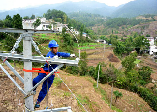 国网四川广元供电公司员工在罗圈岩村进行电网检修