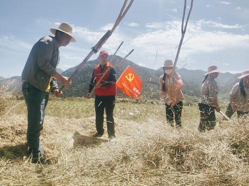 国网甘肃电力驻村干部在田间服务农户秋收,为当地脱贫致富贡献力量