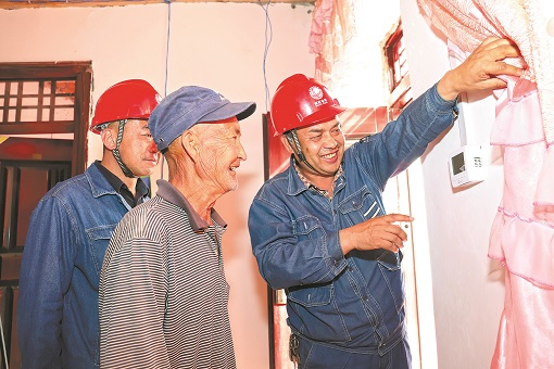 国网新疆喀什供电公司员工服务阿热买里村“煤改电”用户温暖过冬。