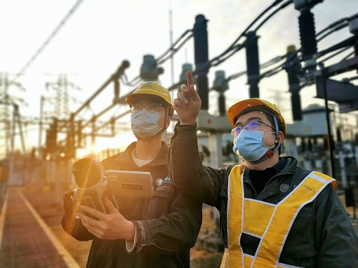 农历大年初四,重庆电力检修公司城西变电运维中心员工余晓莉正手持红外测温仪,和同事徐帅穿行在500千伏圣泉变电站设备区,一边用测温仪对准上方导线、刀闸等接头,一边观测液晶屏显示数据,做好巡查记录。